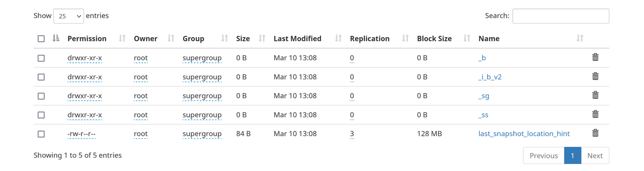 | whdfs | External | StageParams { storage: Webhdfs(StorageWebhdfsConfig { endpoint_url: "http://127.0.0.1:9870", root: "/data-files/", delegation: "" }) } | CopyOptions { on_error: AbortNum(1), size_limit: 0, split_size: 0, purge: false, single: false, max_file_size: 0 } | FileFormatOptions { format: Parquet, skip_header: 0, field_delimiter: ",", record_delimiter: "\n", nan_display: "NaN", escape: "", compression: None, row_tag: "row", quote: "", name: None } | NULL | 'root'@'127.0.0.1' | |